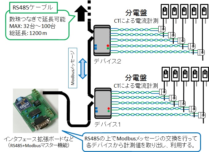 ・5回路まで同時に計測可能な交流電流メータ。 -50Aタイプ(型番:MPM-MODBUS-5PORT-50A) -300Aタイプ(型番:MPM-MODBUS-5PORT-300A) ・RS485による多段接続アプリケーションに対応。 -最大で32台〜100台同時接続可能 (注) RS485のケーブル長やシリアル通信速度などに依存します ・Modbus通信方式に準拠 -マイクロプロセッサやパソコンなどの幅広い機器で 利用可能。 ・M2MゲートウェイやIEEE1888開発ボードに接続可能。 -IEEE1888サーバに送信可。 |