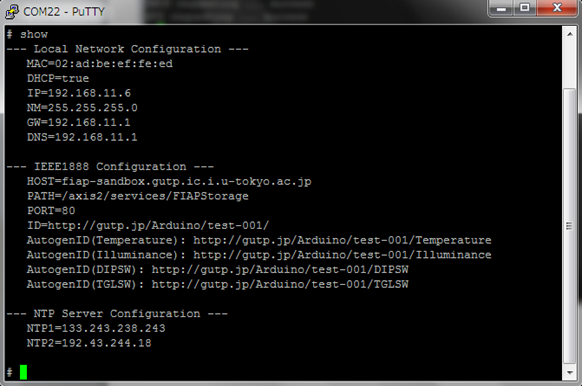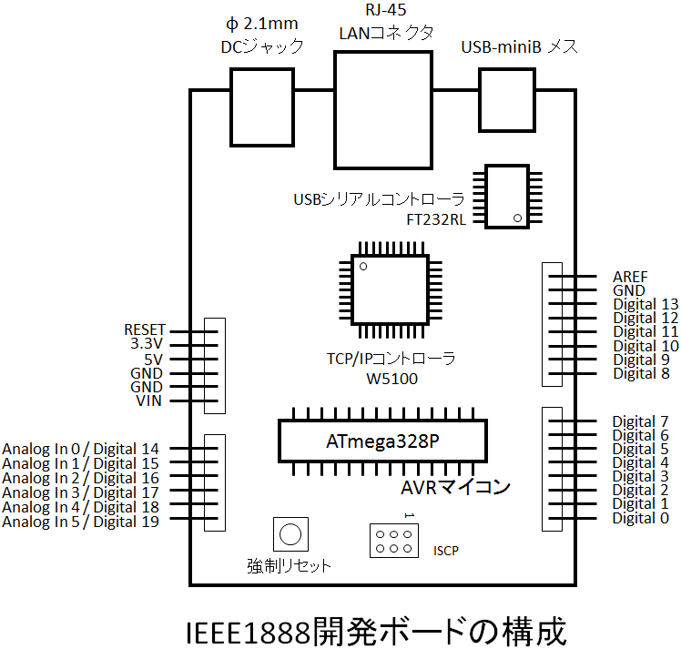 | 通信先のIEEE1888サーバを変更したり、固定IPアドレスで運用したりする場合には、 ボードのシリアルインタフェースを介して、パラメータ設定を変更します。 |