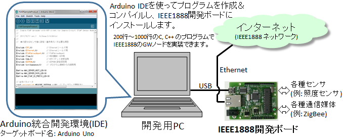 | Arduino統合開発環境を使えば、プログラムの開発および書換えが可能 |